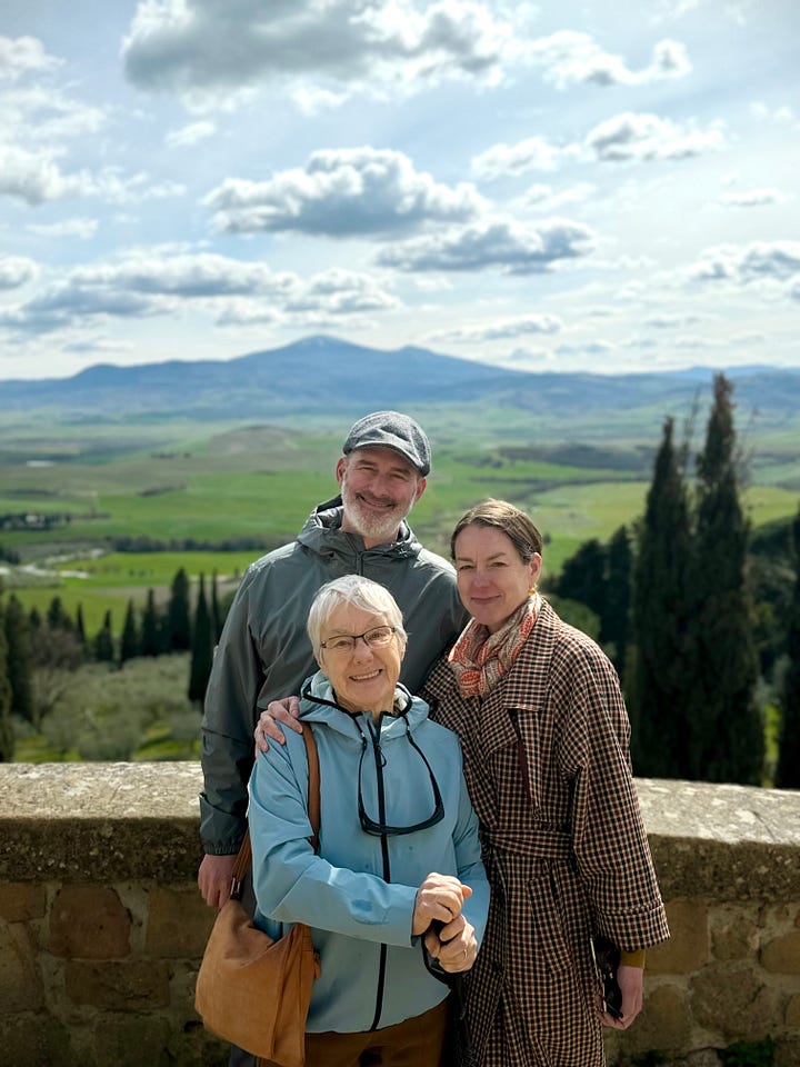 We flew back yesterday to Paris after a triumphant, two-week trip to Italy. My mother impressed us all – and indeed herself – by averaging over 7 kilometres a day on foot (and more than one day over 10), much of which was up and down steep hills. Go Mum!